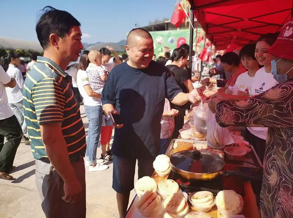春种秋收,春华秋实,一年的辛勤耕耘,才换来金秋时节的硕果累累。在万寿岩大丰收葡萄园内,“岩食荟”美食品鉴也是火热开启。在这里,游客和农民朋友们,不仅可以感受节日的淳朴氛围,更可以品尝到自然馈赠的美味。芋饺、老虎蛋、青草糊、四果汤、糯米糍粑、特色煎饼、当地熏鸭等特色美食联袂上演了一出“舌尖上的丰收”。