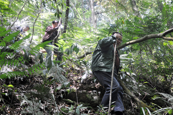 杨玉盛教授带领团队科研人员进行增温样地选点 1989年起,杨玉盛教授就带领科研团队在全省范围内踏查选取试验点,通过比对全省各地林区后,于2004年在三明格氏栲国家森林公园附近建立三明森林生态系统与全球化福建省野外科学观测研究站。