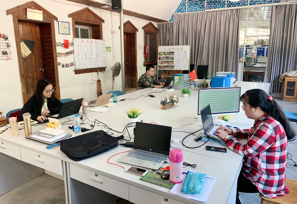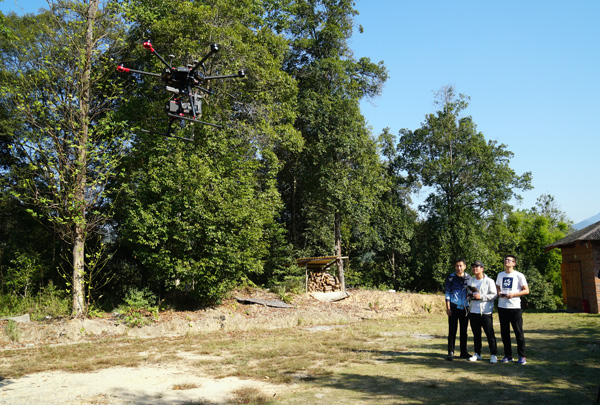 科研人员利用无人机搭载高光谱成像仪进行森林碳汇监测 陈仕东也说:“有时夜里也需要上山采数据,有时研发设备技术到凌晨两三点,而且科研工作不是说花时间进去就能完成的,所以,大家基本没有上下班这种概念。但这样单纯的环境能让人更专心、更集中做科研工作。”