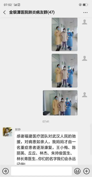 3月7日 星期六 今天是我来武汉的第41天,也是重返战场的第5天,又是感动且欣慰的一天。 40床与34床是母女关系。因为怕会影响母亲病情,女儿一直隐瞒了自己也感染了的事实。而今天,她们母女团聚见面了,这位母亲还能站起来和我合影,特别欣慰。 在十几天前,这位母亲的病情严重到让我有些害怕,害怕她们见不到彼此。所以,当时她女儿让我给她母亲喂牛奶,并嘱咐她母亲一定得喝完时,我满眼泪水。 特别宽慰,这位母亲挺过来了,病情也逐渐好转。她女儿说,千言万语化成一句“谢谢!”我又一次感动得哭了,相信过不了多久,她们母女便能一块儿回家。 3月23日 星期一 明天返程回福建。听到这个消息,很多队友都哭了,思绪万千。从大年初二启程到今天,整整58天,其中的辛苦不言而喻,但我们从未退缩。 前几天与其他医疗队交接,跟每一位病人说“再见”,他们眼含泪水,一遍一遍说着,“你们是最棒的”“你们是好人”,我瞬间泪目。 和他们一起与病魔战斗的每一天、每一刻,铭记在心。当初与他们承诺,你们没好,我们不回,现在却要“食言”了。但我们的“食言”,我想,意味着胜利的曙光将近! 想起1月26日,在福州集合的那一晚,我一夜未眠。杏林门下、救死扶伤、责无旁贷,但说实话,内心仍有担心感染可能,也担心完不成任务。今天,我终于可以很自豪地说,我未辱使命,即将凯旋! 明天即将返程,我偷偷扔了躺在包里的那一纸遗书。我未曾告诉任何人,那天我来,早已准备好一切。现在,很庆幸,它没派上用场,我要回家了。 也许,我的帮助是绵薄的,但当我们紧紧团结在一起时,便坚不可摧!告别武汉,但真情永在,仁义永在,忠勇永在,希望永在! (黄柳青 徐倩倩 整理) |