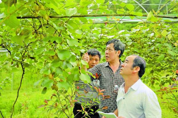 科技助力种植产业持续稳定增收。图为市、县农技专家深入沙溪乡永溪村猕猴桃种植基地“把脉问诊”。(江月兰摄)