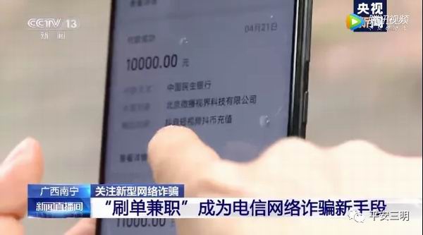 足不出户,日赚千元 工资日结,绝不拖欠 动动手指就轻松赚钱 看到这样的兼职刷单小广告 你心动了吗? 本来只想赚点外快 但一不小心你可能失去更多 …… 广西蒙女士就遭遇了一种 简单又粗暴的刷单兼职诈骗 她在某网站上找工作并投了简历 立马有陌生人邀请她从事刷单兼职 并声称在家操作就可以 最高一单可拿20~30元