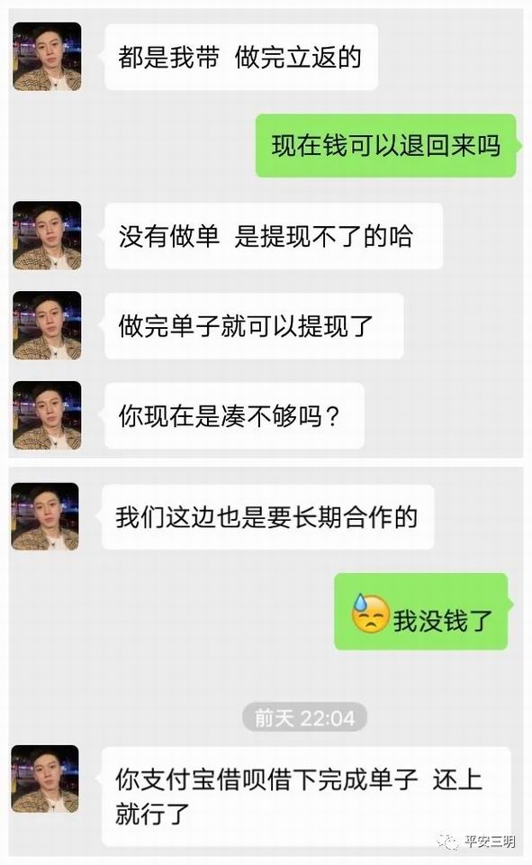想要“福利”的baby 想要“返现”的北北 这稳赚不赔的“致富秘诀”可是带刺的玫瑰 不仅请君入瓮 还能血本无归! 更能负债累累! 案例一 2020年8月,家住清流的周女士通过微信认识了昵称叫“康歌”的神秘人,将周女士拉入“招财进宝”微信群,在群里教大家如何通过做任务返现赚钱。看到大家赚得盆满钵满,周女士心动了,跟着客服的引导下载了“美聊”APP并成功找到了自己的赚钱“导师”。 这位“导师”循循善诱,告诉周女士通过“中国福利网”APP下单就能稳赚不赔,赚取“福利网”大额返现,动动手指就能轻松赚钱。周女士信以为真,在“导师”的指引下,周女士用3000元做了第一笔交易,成功赚取636元的高额返现。周女士彻底相信了“导师”的鬼话,开始不断抢单、汇款、升级订单、增加资金……