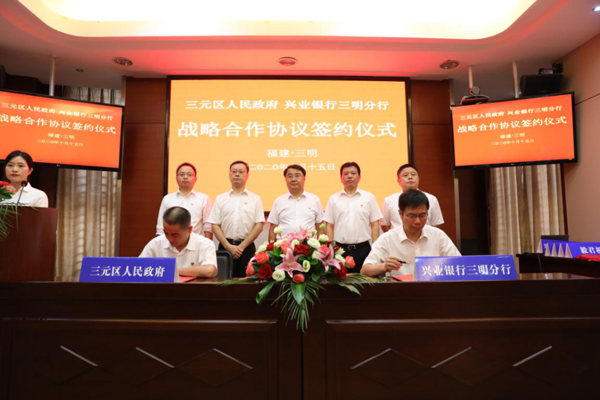 10月15日,三元区人民政府与兴业银行三明分行签署战略合作协议。区领导杨国昕、廖卫国、洪彬、尤阿生和兴业银行三明分行领导罗敦颖、蔡明华、张洪波出席签约仪式。