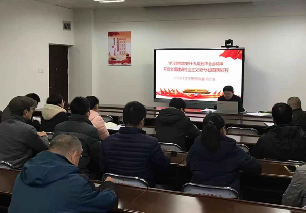 按照区委统一部署,12月18日,三元区委党的十九届五中全会精神宣讲团到工信局、白沙街道和富兴堡街道开展宣讲,并进行座谈交流。 工信局: 党的十九届五中全会精神宣讲团区委宣讲团成员、区工信与商务局党委书记、局长陈长海作专题宣讲,到工信与商务局开展宣讲,并进行座谈交流。工信与商务局全体干部职工和下属支部书记参加宣讲会。 宣讲会上,陈长海从深刻领会党的十九届五中全会的全局性和历史性意义,深刻认识我国进入新发展阶段的重大意义、有利条件和重要特征,准确把握2035年远景目标和“十四五”时期我国发展的指导方针、主要目标、重点任务,牢牢把握构建新发展格局的战略构想和重要着力点,坚持党的全面领导为实现“十四五”规划和2035年远景目标而团结奋斗等方面,并结合三元区工信与商务局实际工作,对全会精神进行了系统解读和深入阐释。 宣讲会结束后,陈长海与工信与商务局下属各支部书记就加强基层党建工作,提高党员归属感,扎实推进产业发展等方面,结合自身经历和工作实践与大家开展座谈交流。 白沙街道: 区委宣讲团到白沙街道宣讲党的十九届五中全会精神,白沙街道党工委理论中心组成员、街道机关党员干部、各村(居)主干参加。 区委宣讲团成员、区教育局党委委员邱木金围绕全会精神,紧扣习近平总书记在党的十九届五中全会上的重要讲话和我区实际,进行了深入浅出地解读,并为如何在基层落实会议精神提供了新思路,党员干部纷纷表示受益匪浅。 宣讲会结束后,街道各级党组织和广大党员干部一致表示要以这次宣讲为契机,强化举措,采取群众喜闻乐见的形式,持续推进宣传宣讲,做好街道班子到社区宣讲,让居民听得懂、能领会、可落实,增进政治认同、思想认同、情感认同,真正让党的十九届五中全会精神家喻户晓、深入人心;要联系实际,以实际需求为导向,对标对表狠抓落实,结合具体工作,主动融入全区发展大局,直面矛盾,增强“争”的意识,拿出“拼”的状态,加压奋进,为全年工作收好官,为明年的工作开好局、起好步。 富兴堡街道: 区委宣讲团到富兴堡街道开展党的十九届五中全会精神宣讲活动,区委宣讲团成员、区社科联主席杨开长进行专题宣讲,街居(村)干部参加。 杨开长围绕全会基本情况,从深刻认识我国进入新发展阶段的重大意义、有利条件和重要特征,“十四五”时期我国发展的指导方针、主要目标、重点任务,构建新发展格局的战略构想和重要着力点,坚持党的全面领导,动员各方面力量为实现“十四五”规划和2035年远景目标而团结奋斗四个方面详细解读了党的十九届五中全会精神,为街居(村)干部进一步领会好、准确把握好、贯彻落实好党的十九届五中全会精神提供了指导。 宣讲会结束后,街居(村)干部纷纷表示,要提高站位抓学习,把学习宣传贯彻党的十九届五中全会精神作为当前和今后一个时期首要政治任务;要搞好结合抓学习,带着责任、带着问题,自觉主动学、联系实际学,把学习成果转化为推进工作的实际举措和成效;要推动工作抓学习,深刻理解和把握“十四五”时期新发展阶段、新发展理念、新发展格局,突出抓好“五比五晒”、征地拆迁、老旧小区改造等工作,以实际行动把全会精神贯彻落实到位。 随后,杨开长来到永兴社区与社区居民、辖区共建单位、退休老党员等开展了座谈交流。 |
