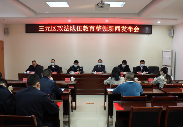 3月17日,三元区召开政法队伍教育整顿新闻发布会。区委副书记、组织部部长,区政法队伍教育整顿领导小组副组长王怀斌向新闻媒体介绍教育整顿的目标任务、对象范围、工作安排及有关措施。东南网、福建法治报、三明日报、三明广播电视台、区融媒体中心到会报道。