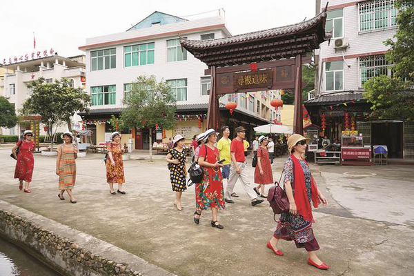 随着俞邦村“网红现象”的持续发酵,沙县依托小吃品牌,趁势将小吃旅游文化城、小吃科技馆、民俗馆、文昌美食街等景点串联起来,沿着线路赏夜景、观技艺、品小吃,丰富多彩的体验吸引全国各地游客纷纷前来“打卡”。图为5月25日,来自南平市顺昌县的游客在俞邦村游玩。