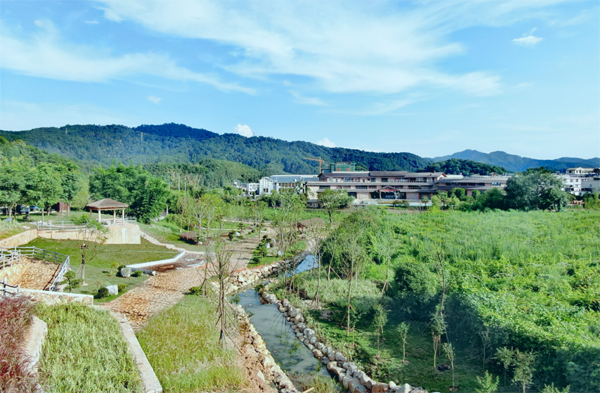 一河两岸景观 项目最大限度地保留原有的地形、水系和树木,对鱼塘溪万寿岩段两岸进行景观提升和贯通,同时新建龙鳞坝,取形“东山路桥”、取意“闽台一脉”,为游客增加趣味性和便利性。 |