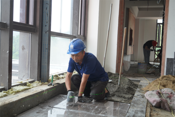 8月16日, 与万寿岩遗址隔溪相望的 三钢万寿岩学院一期项目建设现场 一派热火朝天景象, 300多名工人正紧张有序地忙着 引桥、外围建挡墙、室内精装修等作业, 项目预计10月初建成投用。