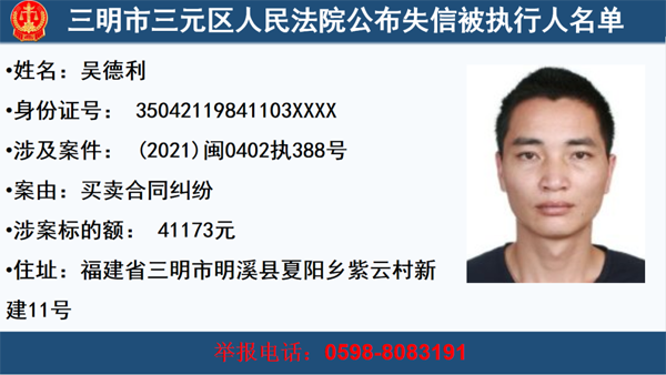 三元法院公布一批失信被执行人,快来看看这些人你认识吗?