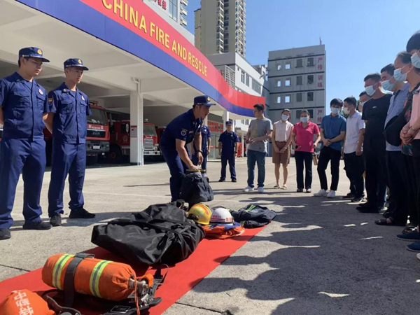 活动现场,消防工作人员对灭火器及消防水带使用进行讲解,并组织培训人员现场“实战演练”,指导他们正确掌握使用灭火器材的方法和注意事项。随后,培训人员还参观了抢险救援服、重型防化服、生命探测仪等各类抢险救援装备,零距离体验消防、学习消防知识,切身体验消防队员日常生活。