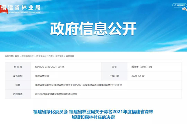 2021年度福建省森林城镇、 森林村庄公布! 其中 三元区陈大镇砂蕉村 三元区莘口镇曹源村 三元区岩前镇富源村 三元区中村乡居阳村 上榜!