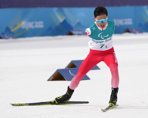 3月13日,中国队选手王晨阳在北京冬残奥会残奥越野滑雪混合接力4×2.5公里比赛中。新华社记者 万象 摄 赛场外,更多残疾人享受到了体育运动带来的酣畅与精彩。 基层社区内,适合残疾人的健身器材日益丰富,全国残疾人社区文体活动参与率由2015年的6.8%持续提升至2021年的23.9%;各类学校中,残疾学生广泛参与学校组织的排舞、啦啦操、旱地冰壶等运动项目,菁菁校园更添欢笑与活力;冰天雪地里,“残疾人冰雪运动季”活动热火朝天,直接参与的人数从最初的万人发展到30多万人。 “通过参与体育活动,可以促进残疾人勇敢走出家门,满足兴趣爱好,增加社会交往,不断丰富自己的生活。社会公众也可以通过残疾人在体育活动中的参与和展示,更加充分了解这个群体。” 2022年3月3日,国务院新闻办举行的《中国残疾人体育事业发展和权利保障》白皮书新闻发布会上,中国残联副理事长王梅梅道出了发展残疾人体育的重要意义。 各自人生舞台中,他们书写精彩华章 这是一首无声胜有声的歌曲表演。 2022年3月4日晚,北京冬残奥会开幕式上,中国残疾人艺术团团长邰丽华带领数十名残疾人表演者用手语“唱”国歌。