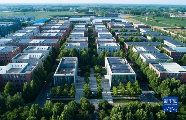 这是6月2日拍摄的固安县卫星导航产业园(无人机照片)。(门丛硕 摄) 目前,固安已有航天产业园、卫星导航产业园、电子商务产业园、新材料产业园、机器人产业园、智慧城市产业园、中关村固安高新技术产业园等10多个产业园区,产业集群发展态势良好,为县域经济发展积蓄了强劲动力。 今年,固安谋划实施总投资335亿多元的中国·固安空港新城项目,规划建设产业综合体、商业综合体、文旅综合体等设施,迈出了与央企合作实施片区开发的重要一步。