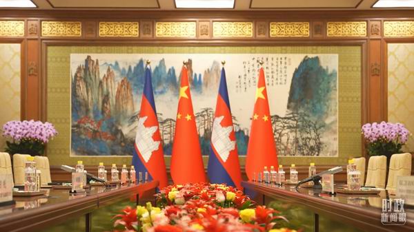△2月14日会谈现场的中伊两国国旗。(总台央视记者郁振一拍摄) 去年9月举行的撒马尔罕峰会,签署了关于伊朗加入上海合作组织义务的备忘录。就在今年此访前夕,莱希签署命令,要求实施有关伊朗加入上合组织的法律。 在会谈中,习主席表示,中方愿同伊方在联合国、上海合作组织等多边平台加强沟通和协作,践行真正的多边主义,维护发展中国家共同利益。 柬埔寨去年担任东盟轮值主席国。在这次会见中,洪森向习主席表示,柬方愿继续积极促进东盟同中国关系发展。