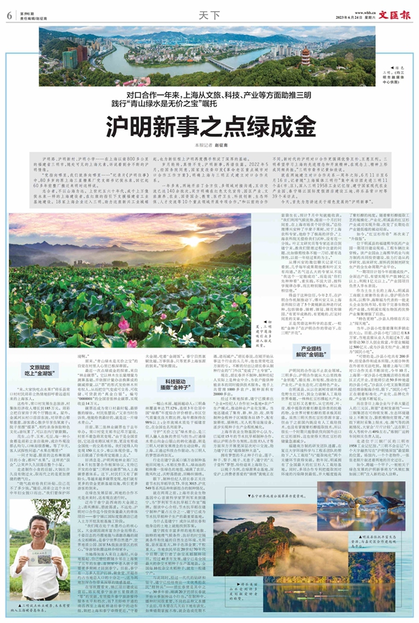 沪明路、沪明新村、沪明小学……在上海以南800多公里的福建省三明市,随处可见的上海元素,诉说着割舍不断的沪明情缘 “党指向哪里,我们就奔向哪里……”纪录片《沪明往事》中,80多岁的原上海三星糖果厂党支部书记侯水泉,回忆起60多年前整厂搬迁来明时这样说。 志合者,不以山海为远。上世纪五六十年代,成千上万像侯水泉一样的上海建设者,在红旗的指引下支援福建省工业基地建设。18家上海企业迁入三明,助力这座新兴工业城崛起,也为新征程上沪明再度携手积淀了深厚的基础。岁月轮转,真情不变,沪明新事,再谱佳篇。2022年5月,经国务院同意,国家发改委印发《革命老区重点城市对口合作工作方案》,明确上海与三明正式建立对口合作关系。 一年多来,两地开启了全方位、多领域对接沟通,互访交流已达140余批次,双方明确在红色文化宣传、园区产业、文旅康养、农业、国资国企、教育、医疗卫生、科技创新、生态环保、人才交流等10个重点领域开展专项合作。“和以前的合作不同新时代的沪明对口合作更强调优势互补、互惠互利。三明希望学习上海的先进理念和开放精神,在观念上、精神上形成同频共振。”三明市委书记黄如欣说。 在两地建立对口合作关系一周年之际,6月11日至6月16日,记者走进三明11个县(市、区),深入三明1958工业记忆馆、建宁国家现代农业产业园、泰宁锦江国际度假酒店建设工地、将乐县常口村等39个采访点。 今天,首先为您讲述关于绿色发展的“沪明新事”。 文旅赋能吃上“金湖饭” “来,大家快吃点水果!”将乐县常口村村民邱彩立热情地招呼着远道而来的上海客人。 这些年,常口村发展生态旅游,村集体经济收入增长到185万元。邱彩立把自家房子两个厅腾出来。屋外,金溪河从村口淙淙东流,对岸青山郁郁葱葱,游客清心散步尽享负氧离子;院子里摆“擂茶”,相约亲身体验特色文化;游玩累了,可以在内厅歇歇脚。 花生、山芋、玉米、毛豆,每一种小食都是邱彩立亲自栽种,或许外观没那么均匀,口味却很香嫩。等了半天,客人试探性问道:“水果在哪里?” 一问才知道,眼前的这些琳琅满目的小食,都叫“水果”。这样的“误会”,让笑声久久回荡在整个小屋。 走进制作小食的后厨,大锅灶许久没有烧过火,取而代之的是更加便捷的燃气灶。 “烧气政府给我们补贴,自己花不了多少钱。”随后,邱彩立这个乡村中年妇女脱口而出,“我们要保护环境啊。” 原来,“青山绿水是无价之宝”的自觉在村里人心里已根深蒂固。 最近一次点绿成金的探索,来自“林业碳票”。它以林木生长量增量为测算基础,并依据计量办法换算成的碳减排量,以“票”的形式发给林木所有权人,从而把空气变成可交易、可收储、可贷款的“真金白银”。编号“0000001”的全国首张林业碳票,实现收益14万元。 碳票还成为常口村最时髦、最骄傲的嫁妆。村民张慧说:“父亲当时告诉我,他能给我最好的,就是这一片绿水青山。” 目前,第二张林业碳票也于去年申办。常口村党支部书记邓万富说,村里不着急将其变现,“由于是全国首创,它还没有跨区域开放,更没有形成全国统一的交易市场。我们觉得人均变现150元太少,难以体现价值。等以后联通了价格肯定能涨上去。” 好消息是,沪明两地林业部门已在6月初签署合作框架协议,支持已开发的存量“三明林业碳票”纳入上海碳普惠体系。这下,村民们又有了新盼头,等越来越多碳票变现,他们就有更多的资金更新基础设施,吸引更多游客的到来。 在绿色发展层面,两地的合作不光是未来时,还有现在进行时。 泛舟于泰宁县西南的大金湖之上,清风拂面,碧波荡漾。不远处,沪明对口合作迄今投资体量最大的单体项目——泰宁锦江国际度假酒店已进入土方开挖及桩基施工阶段。 “我们现在处于水墨丹山的核心区。大金湖因湖床富含沙金而得名,千姿百态的丹霞地貌与清澈浩瀚的湖水交相辉映,是泰宁世界自然遗产、世界地质公园、国家5A级旅游景区的核心。”导游邹秋霞这样介绍家乡。 当她得知客人来自上海时,兴奋地提起,自己曾经跟随乡邻在上海做了五年的生意,直到家中老人孩子需要更多照顾才回到泰宁。目前,泰宁有一万多人在沪打拼,做食堂、开超市约占当地总人口的十分之一,这为两地加深合作带来深厚的情感基础。 在邹秋霞看来,锦江项目建成运营后,将实现泰宁旅游五星级酒店“零”的突破,有效提升泰宁旅游接待服务水平和档次,而7月即将开通的南昌西至上海虹桥途经泰宁的动车组,则把上海和泰宁牵得更近。“守着大金湖,吃着‘金湖饭’。泰宁自然禀赋优越,万事俱备,只等更多上海客源的到来。”邹秋霞说。 科技驱动播撒“金种子” 一幅山水画,越画越动人:三明森林覆盖率达77.12%,连续3年位居中国“绿都”年度综合评价榜首;市区空气质量优良天数比例,每年都保持在98%以上;全市流域水质处于福建首位,在全国也名列前茅。 守护“无价之宝”绿水青山,是三明人融入血脉的责任与担当;打通绿水青山向金山银山的转化通道,则是三明人对新发展理念的生动诠释。而上海,正通过科技合作驱动,为三明人的梦想添砖加瓦。 行走在建宁县溪口镇万亩制种基地田间地头,水稻长势喜人,绿油油的稻秧像一张绿色的地毯,铺满了农田,微风吹过,沃野荡碧波,田畴织锦绣。 眼下,制种经纪人胡长