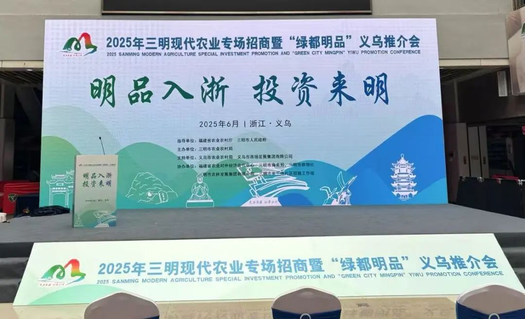六月的义乌,蝉鸣与商潮共振。 6月25日,浙江省义乌农贸城中心广场的晨光里多了几分来自福建的清新,由三明市农业农村局主办的三明现代农业专场招商暨“绿都明品”推介会在此启幕。当高达77.12%森林覆盖率的“中国绿都”携百种农特产品叩响“世界小商品之都”的大门,一场跨越山海的农业合作交响乐就此奏响。