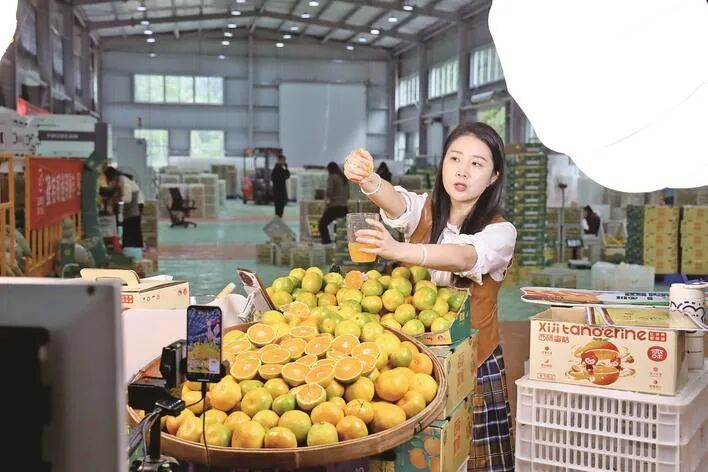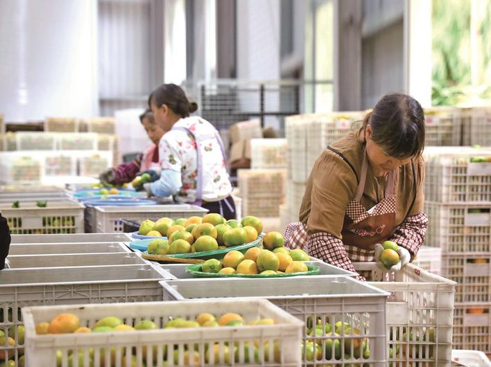 西际蜜桔线上直播间 碳票很轻,却在土生土长的西际村党支部书记余扬炳心里重重落下。他的思绪也飘回20世纪80年代的西际村——进村山路狭窄泥泞,7000多亩山林地中荒地就占了6000多亩,像横亘在前的巨大屏障,将村民富足的希望死死挡在山外。 “听村里老人说,那时种稻子稻子旱、种梨子梨子涩,村民想买包化肥还得肩挑手扛好几里地,一年到头忙下来,有时连肚子都填不饱。”说话间,余扬炳拿出了一沓老照片,荒山变桔园的奇迹,就此一幕幕展开。 西际村的改变,始于1981年的一个决定。村里干部看着漫山荒地犯了愁:“总不能一直穷下去,得找条出路。”于是,他们翻山越岭考察,最终琢磨出“向山要果”的主意,去邻近的中村乡回瑶村学习晚熟蜜桔种植技术。回来后,他们立即着手组建果林队,把荒地划分到户,一户分3亩地、200株桔苗。 “当时不少村民没信心,村干部就带头种,让大伙看到成效。”余扬炳介绍,第一年村里就迎来了蜜桔丰收,村民们见种桔能赚钱,纷纷跟着扩大种植,曾经的荒山慢慢冒出了绿芽。 此后,柑桔高位嫁接技术和早蜜品种的引入,让西际蜜桔迎来出山热潮,村民的腰包也跟着鼓起来,人均年收入从1996年的3700元,一路增长到如今的7.6万元。 “外面再好,不如守着家乡的甜。”村里的点滴变化,余扬炳都记在心里:乡村主干道从黄土路变成水泥路,进村道路也由3.5米拓宽到6.5米,冷链货车直接开到田间地头;新安装的弥雾喷雾系统让“背着喷雾器满山跑”成为历史,10亩柑桔园不到10分钟就能喷完药,用药量还少了30%;村民把镜头一架、手机一开,做起了带货直播,西际蜜桔也有了“云柜台”…… 品牌响了,销路自然也宽了。借着沪明对口合作的东风,余扬炳把西际蜜桔的“吆喝声”带到了上海。从双城联动的“三明蜜桔”推介会,到上海农特产品展会上的专属展区,西际蜜桔一步步走进上海的商超货架、社区团购,也攒下了一批“认牌下单”的上海客商。 “今年果树刚开花,桔子就被客商早早认购了,村民采摘后第一时间就能分拣装盒,运输出山。”站在柑桔采后商品化处理中心,余扬炳指着里面高速运转的双通道分选线,语气里是藏不住的自豪。 这套多功能双通道分选机,是西际村于今年9月投用的新设备,全长52米、宽3.3米,拥有32个出口,每小时可分拣6000斤蜜桔,比旧分拣线效率提升近一半,每颗果子的口感、甜度、果面完好度均能精准甄别。