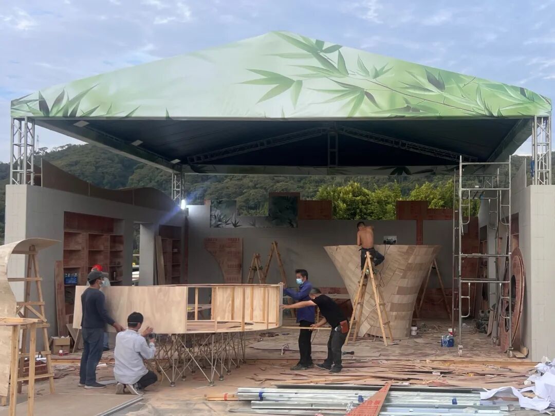 10 月 31日,第十七届海峡论坛·第四届海峡两岸(三明)乡村融合发展论坛三元区特色展示区主体架设工作有序推进。