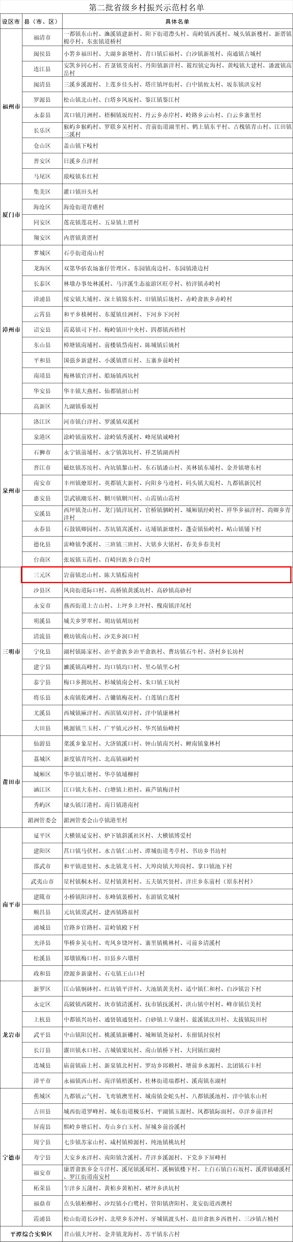 最新! 福建省农业农村厅发布 第二批省级乡村振兴示范乡镇、示范村 名单公示公告 三元有2个村 他们是——
