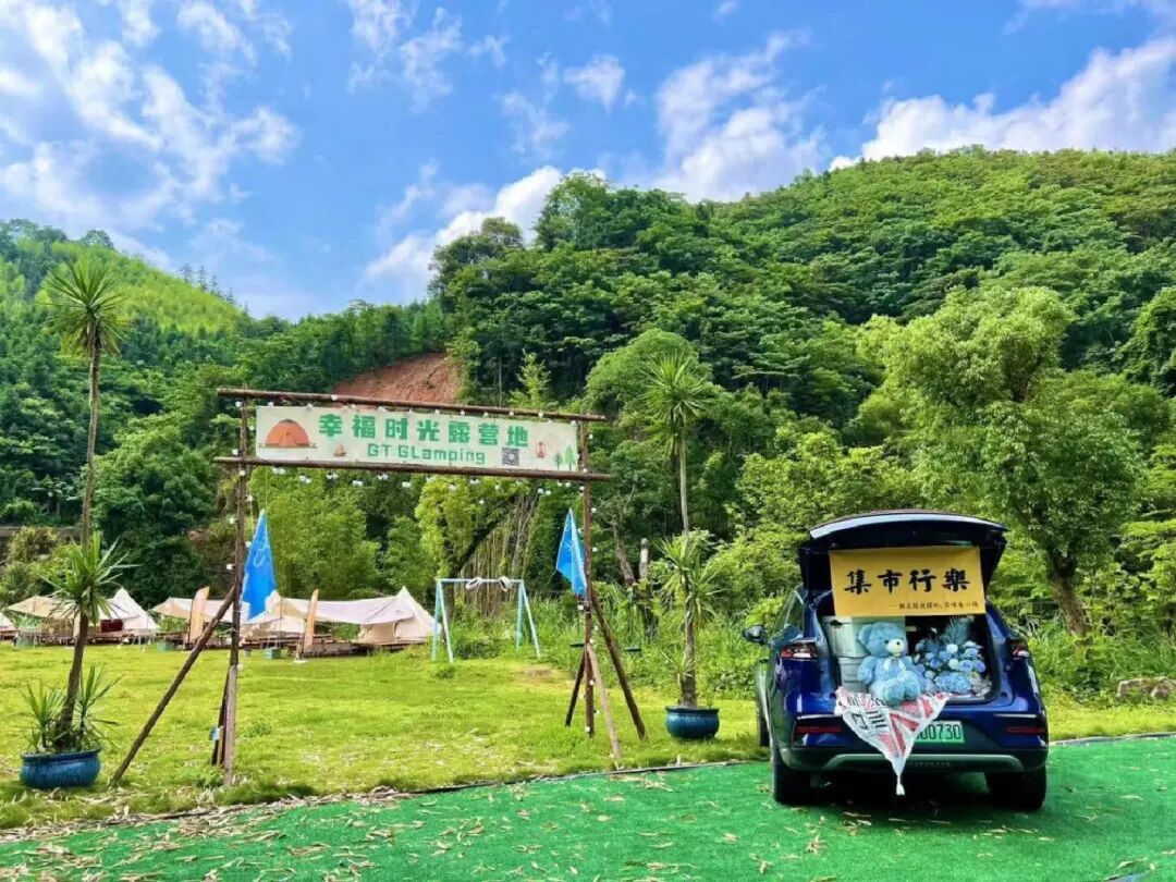 沿着碧溪向上,便能看到“幸福时光露营基地”的立牌站在群山苍翠间。一脉清流直接串联起水旅体验的各个项目:水上皮划艇、户外泳池、亲子萌宠乐园,旱地冰壶……丰富多样的项目让这里成为团建、研学、亲子活动的热门选择,“天然氧吧+水美村景”的特色更成就了玩在陈大镇的独特体验。国庆期间,一场“萌宠乐园”主题活动吸引游客超8000人次,收入突破10万元。