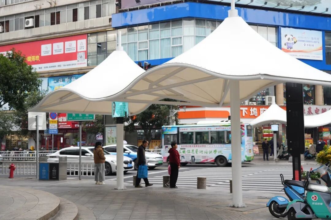 近日,三元区多个十字路口的等候区域,一顶顶简约大气的白色遮阳棚陆续“上岗”,不仅为等候红灯的市民撑起了防晒避雨的安心空间,更以清爽造型为城市颜值加分,成为街头暖心的民生风景。