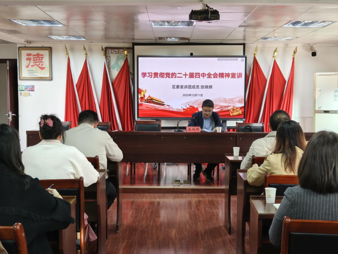 林宏峰围绕党的二十届四中全会的重大意义、“十五五”时期经济社会发展的指导方针和主要目标、战略任务和重大举措等方面,重点解读全会关于完善空巢老人、困境儿童、残疾人等群体服务保障体系等与群众利益相关的内容,并结合荆西街道实际,对全会精神进行全面宣讲。 与会人员纷纷表示,宣讲既有理论高度又贴合民生实际,让人备受鼓舞。下一步,荆西街道将以全会精神为指引,扎实办好民生实事,不断增强群众的获得感、幸福感、安全感。 列西街道 12月11日,区委宣讲团成员、区委台办主任王侃到列西街道宣讲党的二十届四中全会精神。