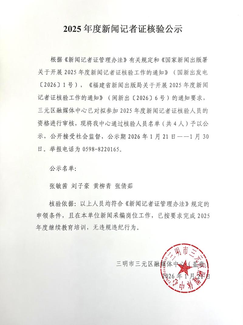 • 互联网新闻信息服务许可证编号:35120210045 中文域名:三明市三元区融媒体中心.公益