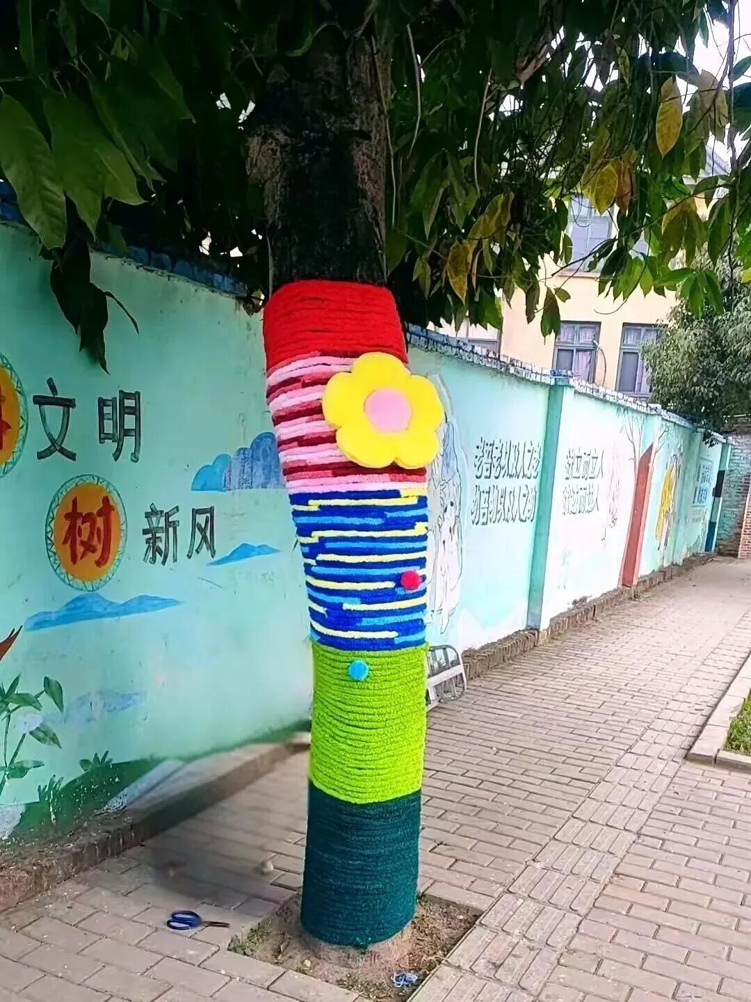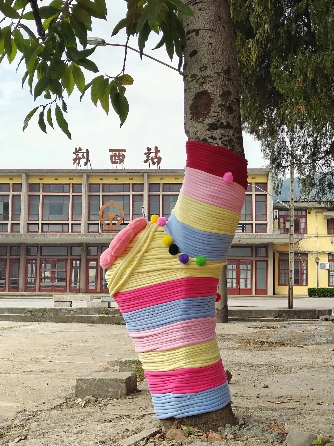新春佳节将至,荆西街道解锁新春新玩法!荆西火车站历史文化街区在基础设施建设持续完善的同时,街区装饰与特色活动内容也在不断丰富升级。为进一步点燃街区新春欢乐氛围、激发居民消费活力,荆西街道携手三明医学科技职业学院工程与设计系团委、人文与教育系团委,共同发起 “给树穿新衣,暖暖过大年” “老街新文创IP墙绘”等系列创意美化活动,将传统年味与青春创意巧妙相融,让荆西火车站历史文化街区处处洋溢着浓郁新春气息,年味十足! 大树穿新衣 多巴胺编织温暖街区 作为这次活动的吸睛亮点,“大树穿新衣”行动简直太有爱!大学生们亲手用五彩毛线为街道两旁的树木织起“彩色毛衣”,一棵棵普通的路边树秒变萌趣十足的街头艺术装置。这些治愈系树衣不仅引来路人纷纷拍照打卡,更在寒冷的冬日里注入一股暖融融的青春气息。