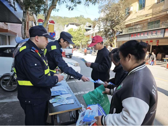 赶圩天送安全,让道路法规“入脑入心” 借助农村年前赶圩天人员集中的契机,中村乡组织民警、志愿者在圩日集市设立交通安全宣传点。针对农村老年人、三轮车驾驶员等重点群体,宣传人员用方言结合典型事故案例进行解读,让安全知识听得懂、记得住。 此次宣传活动共发放各类宣传材料400余份,覆盖群众超500人次,进一步增强了农村群众的交通安全意识,营造了“安全出行、文明出行”的浓厚氛围。