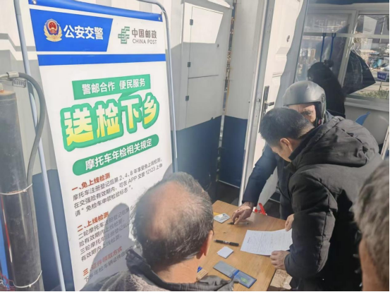警邮联动下乡,让摩托车年检“家门口办” 依托“警邮合作”便民服务机制,中村乡联合公安交警、中国邮政启动“送检下乡”专项行动,现场为群众办理摩托车年检、申领检验合格标志等业务。 活动现场,工作人员一边核对车辆信息、开展安全检测,一边向车主讲解日常维护知识。此次活动共为30辆摩托车完成年检,让村民无需往返城区奔波,在家门口就能享受到便捷的车驾管服务,切实解决了农村群众“检车远、检车难”的痛点。