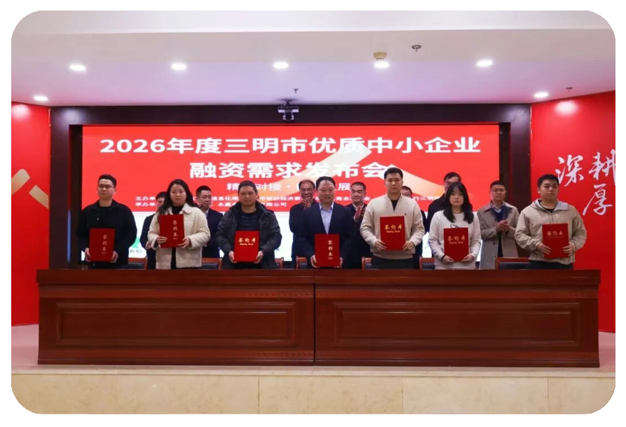 为助推全市一季度工业经济“开门红”,赋能优质中小企业高质量发展,1月27日,三元区金融服务专项组织三明农商银行、永赢金融租赁有限公司,承办“惠企政策进百园入万企”暨2026年度三明市优质中小企业融资需求发布会。