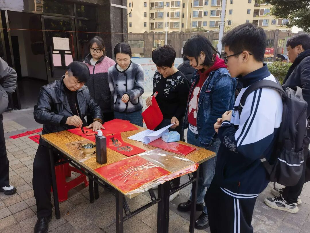 活动在社区小广场举行,洋溢着浓浓的年味。现场,5位书法家齐聚一堂,隶书、行草、楷书,各展所长。居民们近距离与书法老师们交流互动,亲身感受手写春联的笔墨韵味与独特温度,品味传统书法艺术的魅力。
