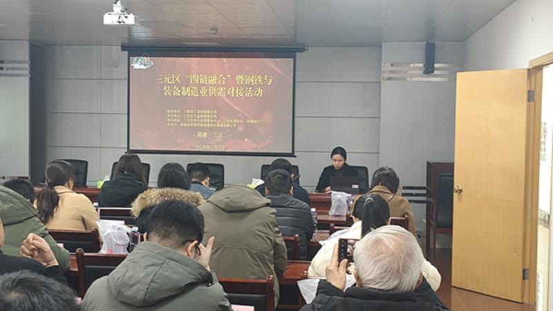 2026年2月,为深入贯彻落实创新驱动发展战略,推动区域工业经济高质量发展,三元区工业和信息化局精心策划并成功组织了两场次的三元区“四链融合”暨供需对接活动。活动分别聚焦钢铁与装备制造产业及工业行业,通过线上线下相结合的创新模式,旨在进一步宣传三元区优势产业,精准匹配产业链上下游供需,深化协作配套,助力企业开拓市场、增产增效。 本次活动得到了三明市工业和信息化局、三元区工业和信息化局的大力支持和悉心指导,由三元区中小企业服务中心、中国银行三元支行、福建省君诺科技成果转化服务有限公司具体承办。活动以推动产业链、创新链、资金链、人才链“四链”深度融合为核心,致力于打通产业发展的关键环节,为区域经济注入新动能。
